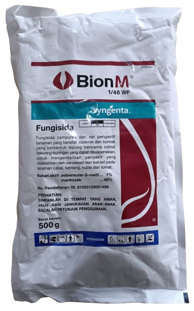 Kandungan bahan aktif dalam fungisida Bion M adalah Asibensolar-S-Metil 1 % dan Mankozeb 48 %, yang ampuh mengatasi penyakit tanaman cabai.