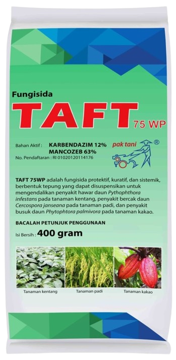 Kandungan bahan aktif dalam fungisida Taft adalah Karbendazim 12 % serta Mankozeb 63 %, yang efektif untuk mengatasi penyakit tanaman cabai.